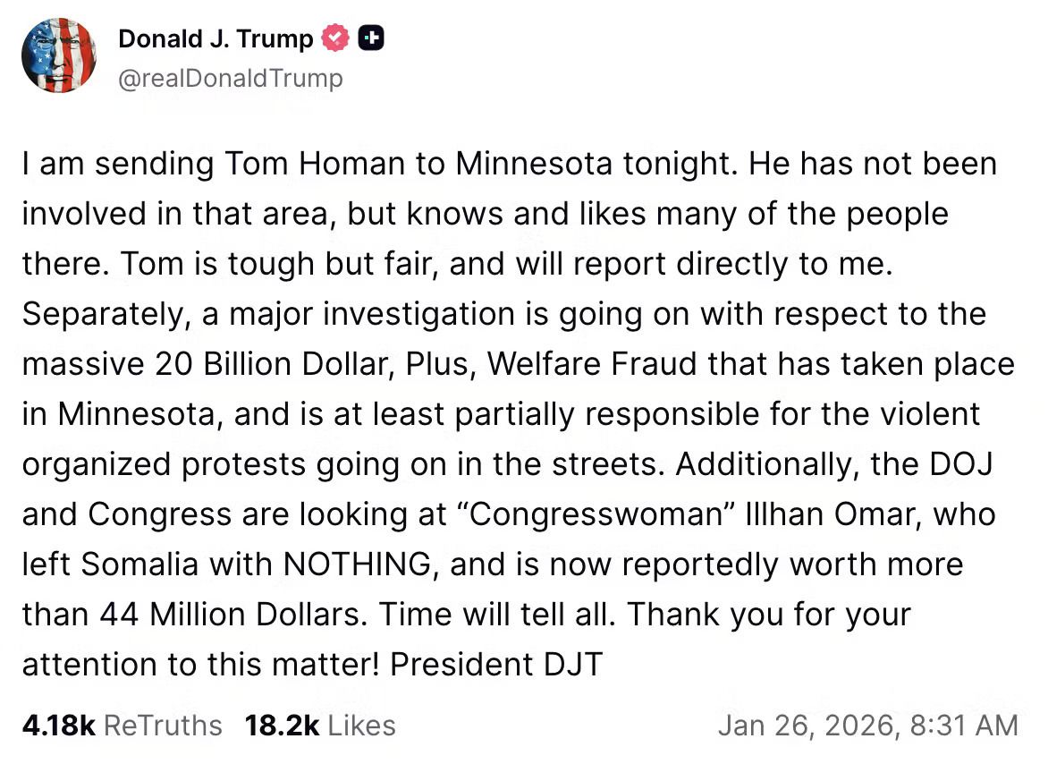 Trump made the message clear: enforcement will continue, law enforcement will be protected, and a massive Minnesota fraud investigation is just getting started. |