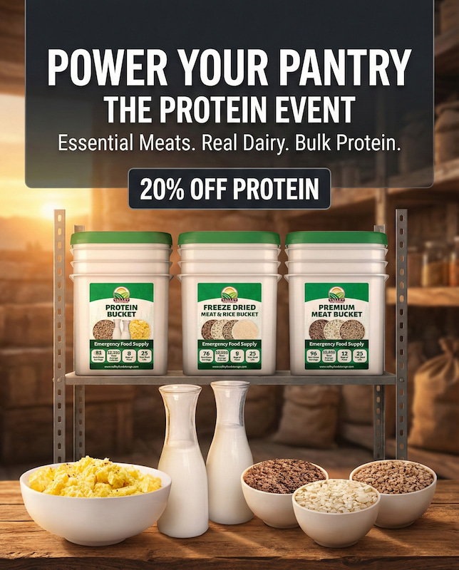 Simple Preparation: In a stressful situation, you need easy. Just add water and your protein is ready to eat or add to your favorite recipes. | | Featured Deals for Your Pantry | | Don't wait for a "next time." Emergencies don't give warnings, and our most popular protein items often sell out during these events. Secure your family's nutrition now while our entire protein collection is 20% off | | Stay Ready,