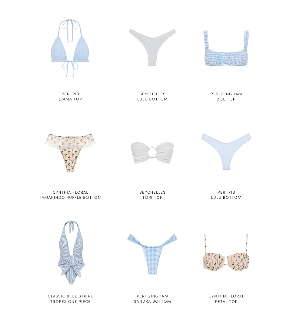 Free shipping on all US orders over $100 | | An edit of blue and white swim styles curated for bachelorette weekends. Inspired by Vale Genta bach party in Miami. | | An edit of blue and white swim styles curated for bachelorette weekends. Inspired by Vale Genta bach party in Miami. |