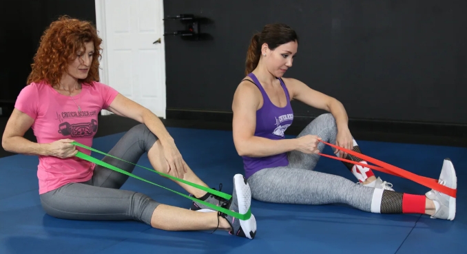 You're going to use a typical resistance band around the ankles. You can purchase these at most sporting goods stores. They provide good hip health, hip stability and strength.