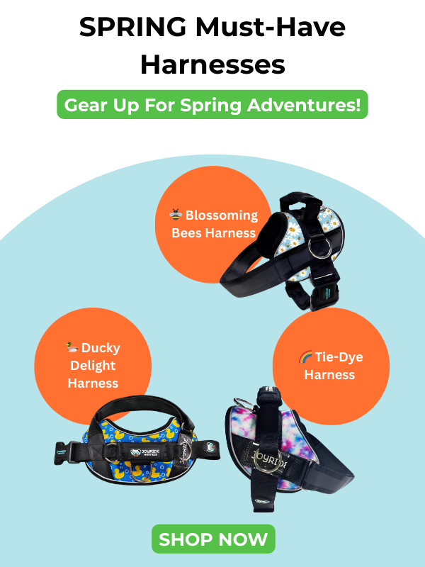 Spring's finally showing up… and so are the spring harnesses. 🌸 Longer evenings, sunnier walks, and more chances to get outside with your pup = the perfect time for a fresh pattern. Spring picks we're loving: 🦆 Ducky Delight Harness 2.0 Playful, bright, and basically made for spring walks. 🐝 Blossoming Bees Harness 2.0 A little pop of spring, without sacrificing comfort. 🌈 Tie-Dye Harness 2.0 Bright, fun, and made to stand out on every walk. 🎨 All Patterned Harnesses (more spring options) If your pup's vibe is "give me choices," this is the page. Same Joyride Harness 2.0 you know: easy on/off, comfy fit, and designed for smoother walks. | | | | |