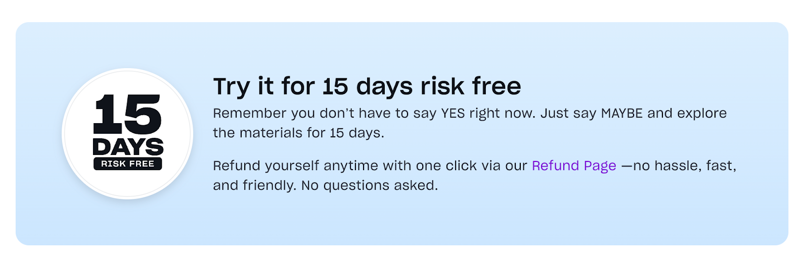 We got you covered with 15-Day Risk-Free Guarantee |